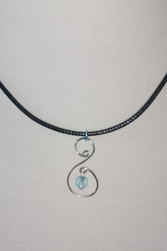 mit 1 an Eis und Winter erinnernden, mattblauen Kunststoff-Perle in einem zarten Blau, die mit einem Nietstift aus Metall angefügt wurde.