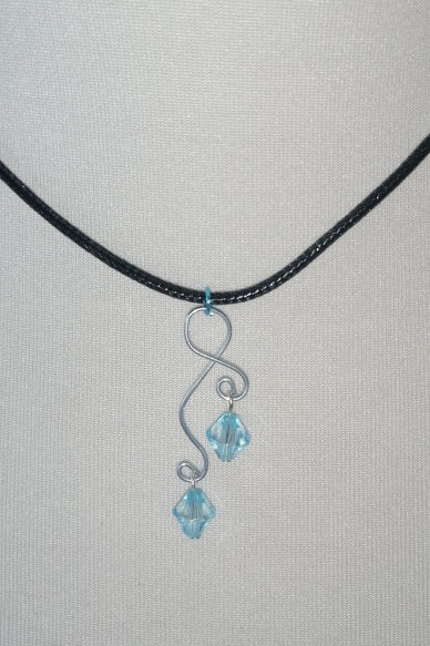 mit 2 Kunststoff-Perlen in einem zarten Blau, die mit Nietstiften aus Metall angefügt wurden.