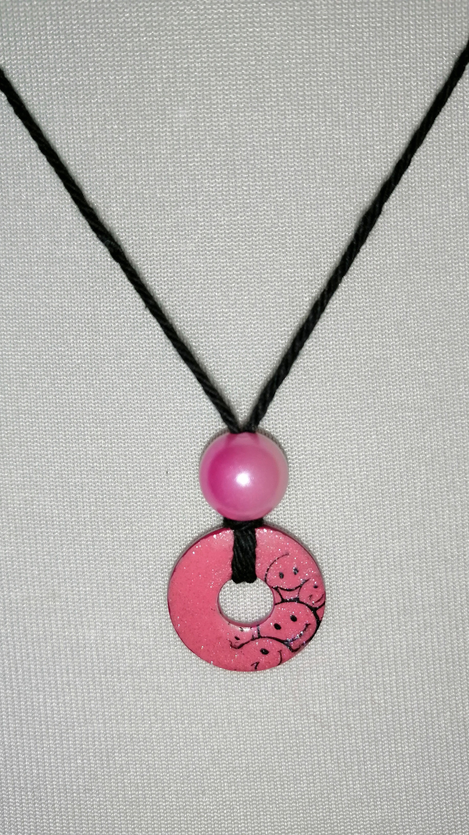 Keep smiling :) Ein Lächeln kann jeder immer gebrauchen. Hier treffen ein schönes Pink, überzogen mit einem zarten Glitzer und Smileys aufeinander.