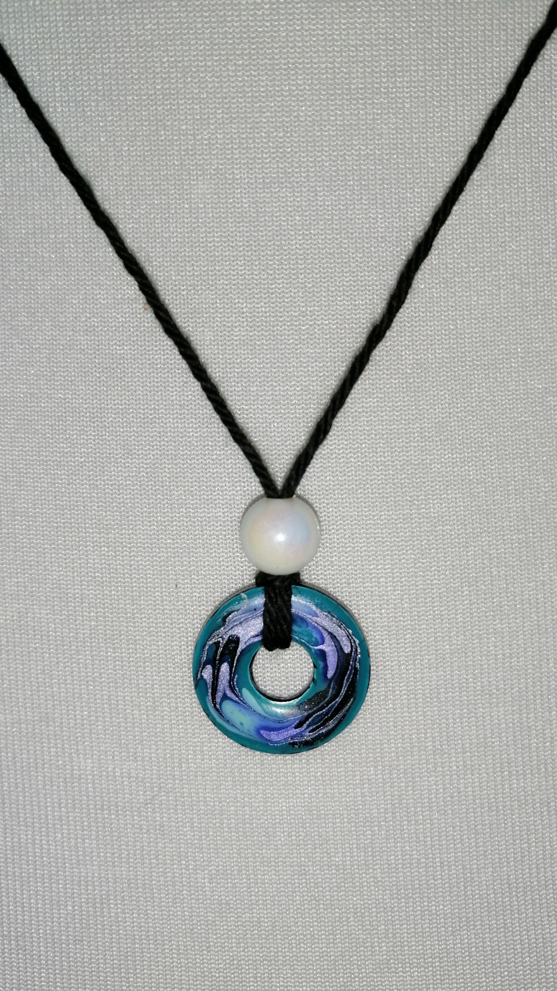 Und noch ein besonders schönes Exemplar mit Nass-In-Nass-Design. Als Basisfarbe habe ich hier ein kräftiges Türkis gewählt und Blau, Silber und Schwarz mit einfließen lassen. Die Rückseite und Kanten sind in schwarz lackiert.