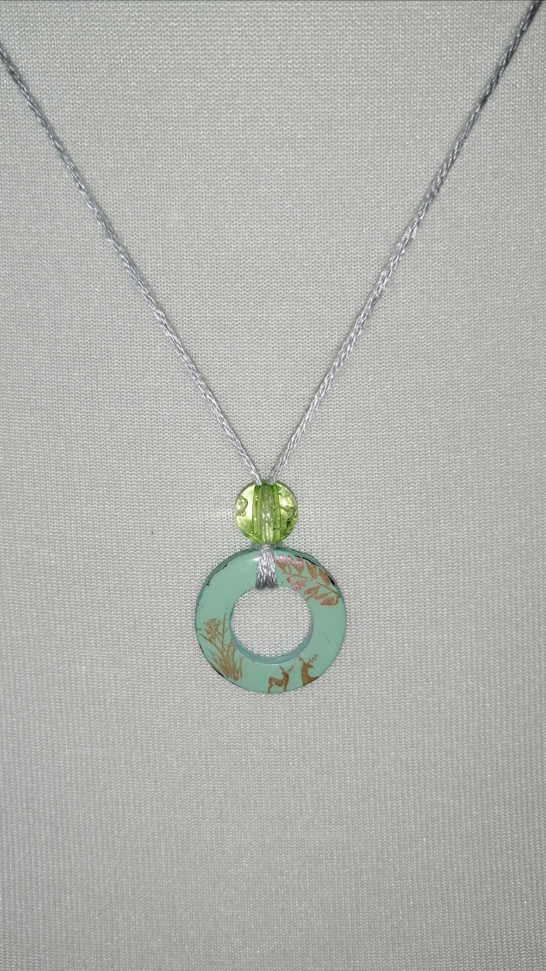 Hier habe ich ein bronzefarbenes Motiv auf eine beidseitige helltürkise Basis treffen lassen. Auch beide Kanten sind in dem hellen Türkis lackiert.