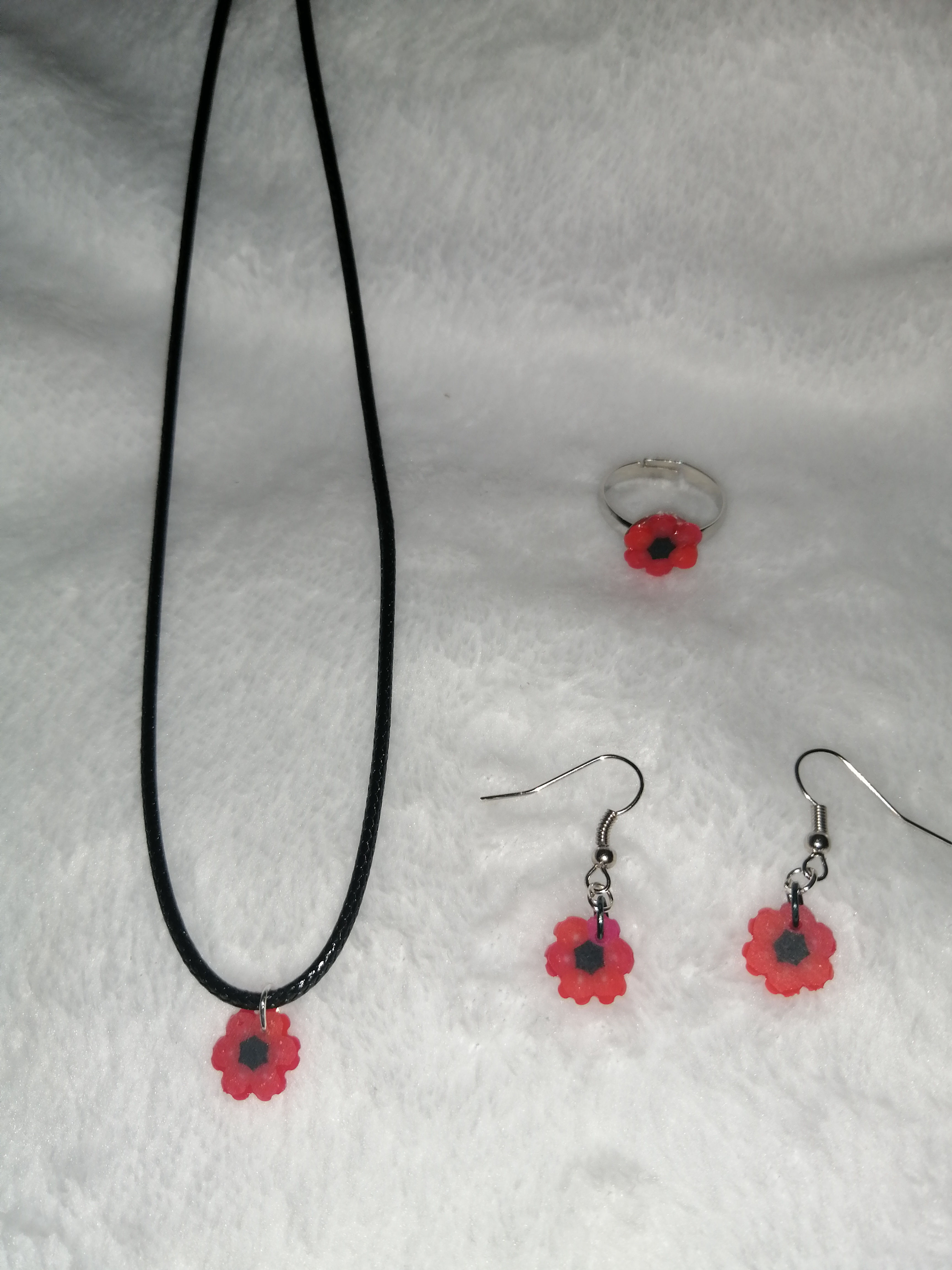 Modeschmuck-Set bestehend aus Halskette, Ohrhaken und Ring