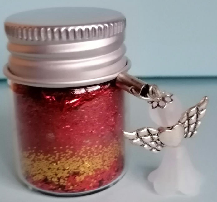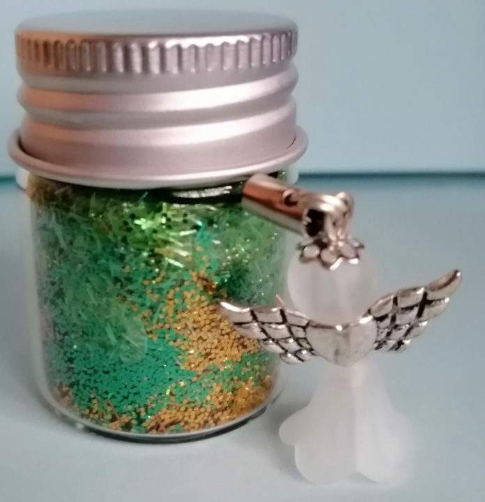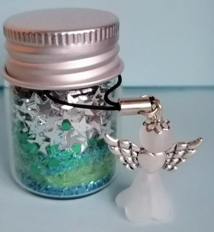 Mit abnehmbarem Mini-Schutzengel in weiß an einer schwarzen Schlaufe zum Aufhängen
